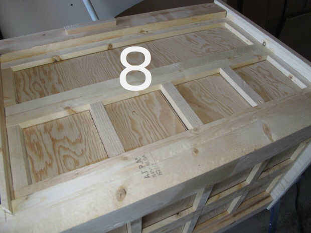 (Cuadro 9) como usted trabaja su manera alrededor de la mesa, estoy detrás antes de pegar las piezas de abajo para ver cómo alineado con lo que ya he instalado.