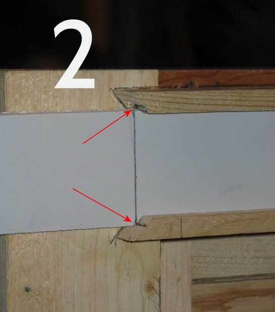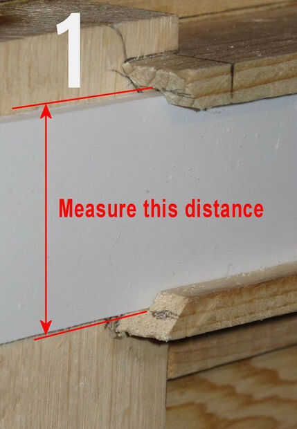 (Foto 2) Marcan el final de la ranura en las parte superior e inferior tableros de la muestra. Las flechas en la imagen punto a que me refiero. Deslice el tablero en y marca tu tablero de la muestra. Dibuje una línea conectando las dos marcas.