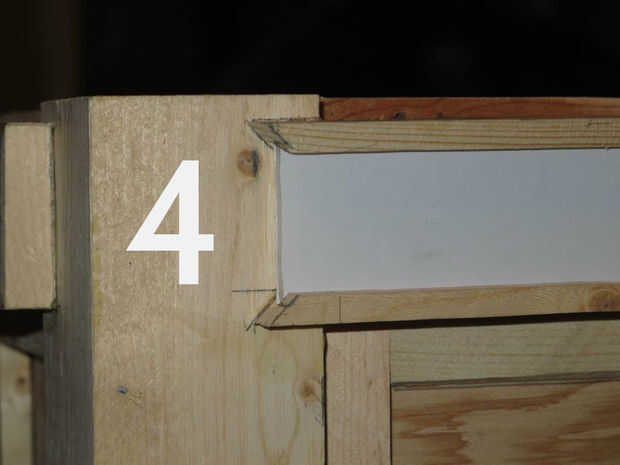 (Imagen 4) Una vez cortado y colocado detrás en la tabla deben sobresalen sólo un poco. de esta manera que se ajusta en la ranura de la pieza final que se fija más adelante.