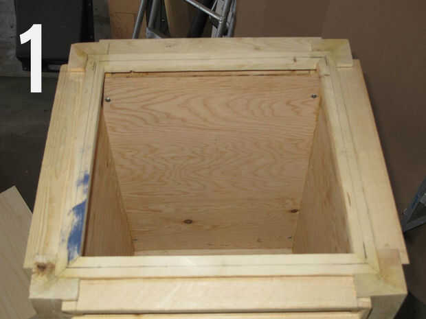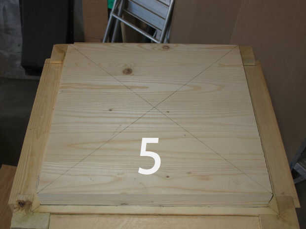 (Cuadro 1) Trace una línea a través del centro de la caja de madera como se ve en la foto. Se trata del borde de la cubierta una vez instalado.