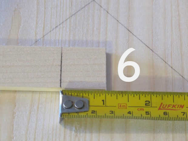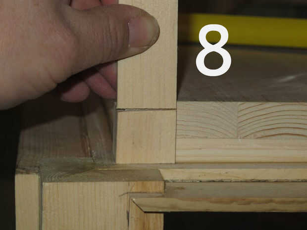 (Imagen 7) Arena un borde a 45 grados. Quiere al lado del palo, la parte no cortada de la arena, imagen 8 muestra cómo la pieza cortada es en relación con el palo original.
