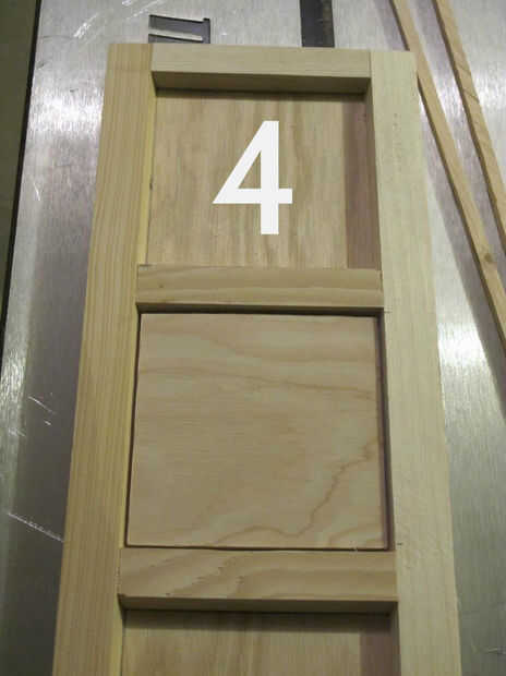 (Imagen 4) Encolar y sujetar el panel en su lugar. Una vez seco le puede entonces uso el otro 1/4 de pulgada piezas se corta para formar un borde alrededor del panel (Foto 5). Si usted es un selector de nit como yo, tendrás las tiras laterales para ser más largo que las dos tiras cruzadas como se trata de cómo son en el apoyo real.