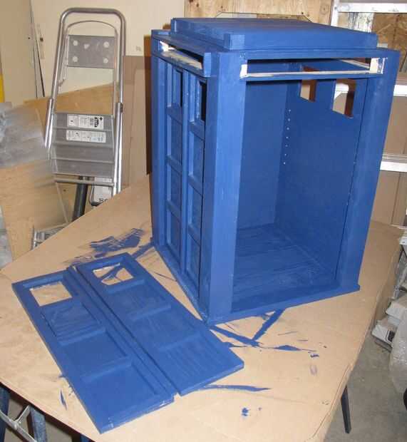 Ahora es el momento para poner la primera capa de pintura de la mesa lateral. Es más fácil hacer la primera capa en las puertas antes de fijarlos. He utilizado 'Rich Navy' como mi color. Me pareció el partido más cercano en condiciones de iluminación diferentes.