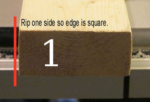 (Cuadro 1) Tome cada uno corta 2 x 4 y rip (el lado corto) de la Junta. 2 x 4 no son cuadrados y cortando un lado de la Junta se enfrentarán. CORTE lo suficiente como para sacar las esquinas redondeadas. termina siendo alrededor de un 1/8 de pulgada. Prácticamente el grueso de la hoja. Si usted toma más apagado de lo que necesites vas a terminar encima de tener que comprar más juntas más adelante como no tienes suficientes materiales.