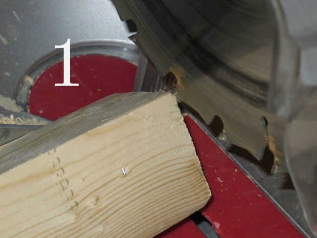 (Cuadro 1) Usted está ahora va a cortar la esquina postes a la medida. No importa que comience con el extremo pero empecé con el extremo que es casi uniforme. Aunque el final parece incluso podría ser hacia fuera suficiente para causar el post que no se siente correctamente. Así que corte el extremo usando mi tronzadora para asegurarse de que el post es perfectamente plano. Sólo cortar la con de la hoja de sierra,