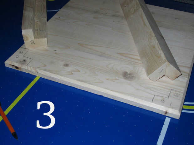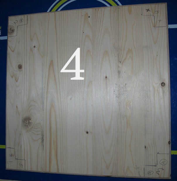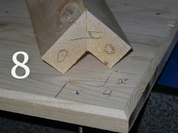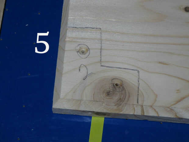 (Imagen 3 y 4) Como dibujar alrededor de cada poste de la esquina, la esquina de la base del número y entonces número demasiado la parte inferior del post antes de pasar al siguiente post. Como configuras tu post encontrarás pequeñas imperfecciones en el corte, la base, etc.. Les numeración asegurará que el trabajo se colocan en conjunto cada poste en el punto exacto que desea no tendrá que volver a hacer. Una vez que ha marcado la base para todos los mensajes de cuatro esquinas, volver atrás y marque con una 'X' donde usted desea perforar aunque. Dos tornillos son suficientes para mantener cosas Unidas mientras se seca el pegamento.