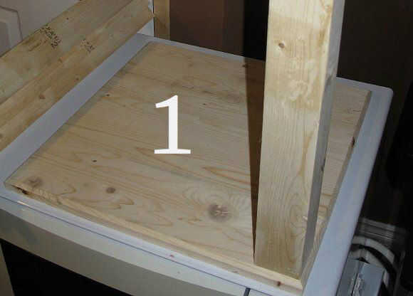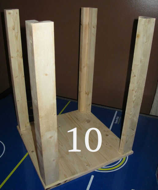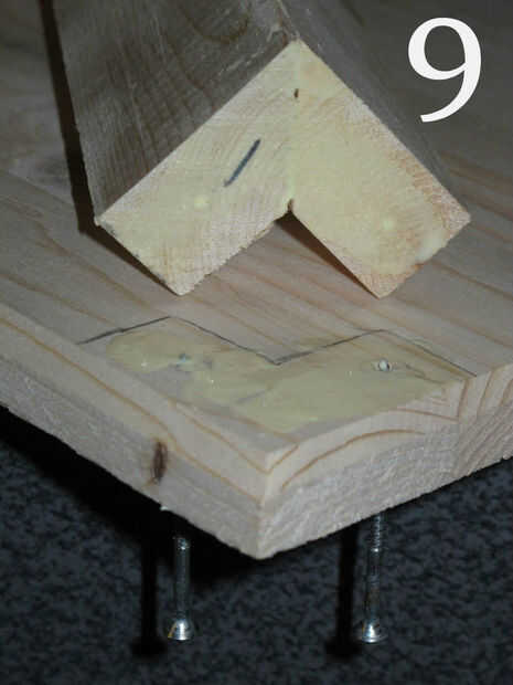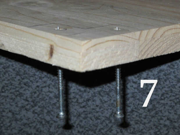 (Imagen 7) Utilicé tornillos de 2 1/2 número 8. Conecte completamente un puesto antes de pasar a la siguiente. Si no tiene tornillos colgando hacia fuera y será difícil trabajar con la base de esa manera. Poner dos tornillos de la parte inferior sólo hasta que las puntas están empujando a través de.