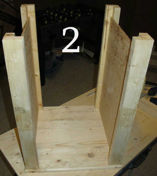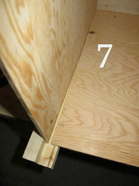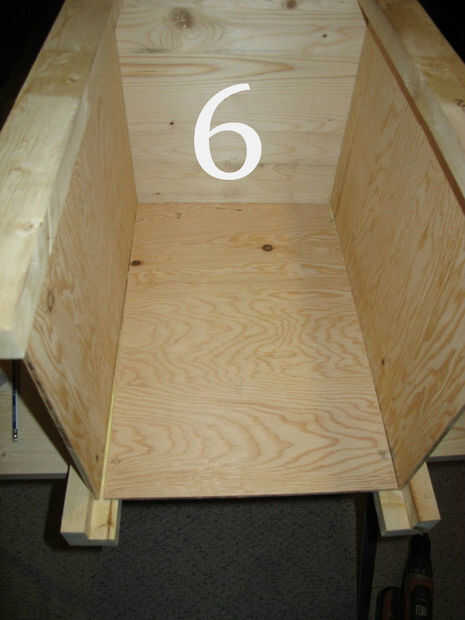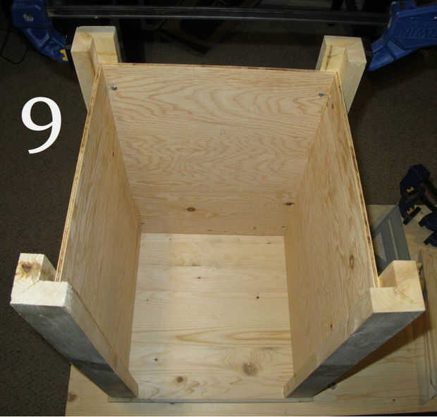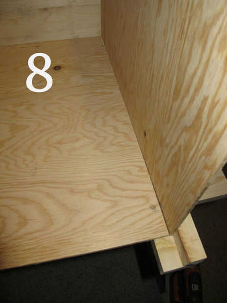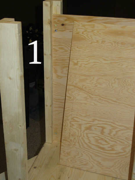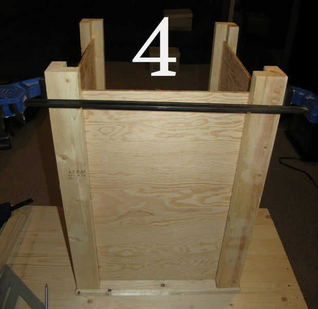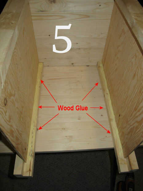Frotis de pegamento por todo el panel de fuera de las líneas que dibujó, el área del panel va a tocar el post y también en todo el interior del poste (Foto 5 muestra esto). Coloque el panel en el lugar correcto en la mesa del lado y el panel en el tornillo. Asegúrese de que sus tornillos no son lo suficientemente largos para pasar todo el camino por el post. Utilicé tornillos de 3/4" número 8.