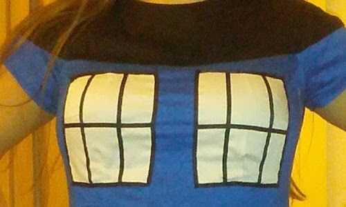 Tardis windows cortan dos rectángulos de tamaño 13 cm x 16 cm de la tela blanca. Si estás con curvas como yo, tienes que hacer los dardos en tu windows. PIN esquinas de los rectángulos a tu vestido, colocándolos debajo de la parte negra. Luego recoja a la tela en los lados para encajar mejor en su pecho. Necesitará hacer esto por ti mismo, a menos que tengas perfectamente juego maniquí. Liberar y coser los dardos. PIN otra vez. Instale el windows por Hilvanar.