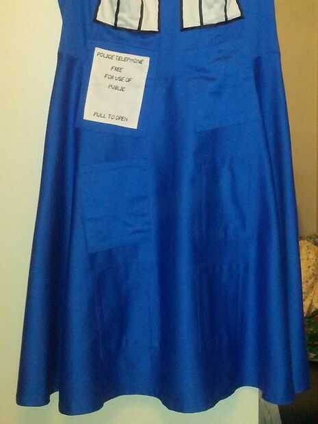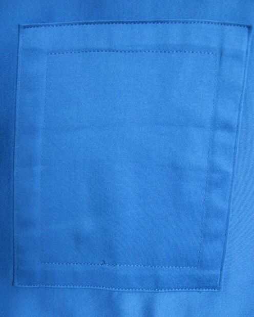 Coser los rectángulos en el vestido con hilo azul. Hacerlo dos veces - una vez que una el borde y el segundo tiempo deja 2cm del borde.