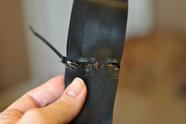 No te preocupes demasiado por el desgaste del material de cinturón de seguridad; no ha sido un problema. (Usted podría chamuscar los bordes con un mechero si te hace sentir mejor).