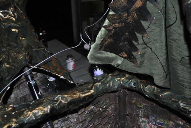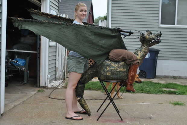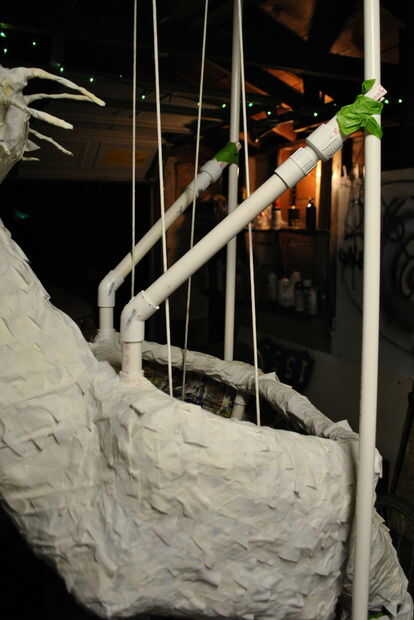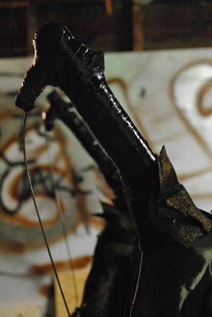 Esta fue la primera vez el dragón en el techo. Es una buena idea poner mucha presión en las articulaciones de les cemento tan profundamente como sea posible. (Esto obviamente es la parte más débil del dragón. Las alas parecen seguras Actualizaré este Instructable si caen las alas.)