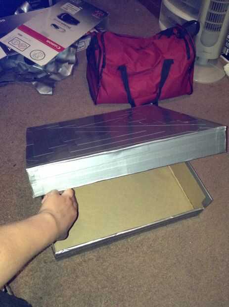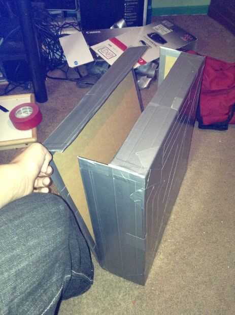 breves instrucciones... esto es sólo hecho de cinta adhesiva, cartón, pegamento caliente y el marcador lo primero que hice fue a sorteo las piezas en una hoja de cartón. luego con un xacto cuchillo que corté las piezas hacia fuera entonces yo calient