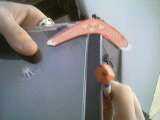 1 usando un objeto plano como un caso de libro o cd que puso el boomerang en el borde y utiliza un lápiz o bolígrafo y la huelga que remite rápidamente por lo que va a volar.