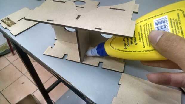Lo primero es unir las principales base compuesta por las piezas mas grandes con un poco de pegamento, los cortes nos parte un Sensory el sentido correcto de las piezas