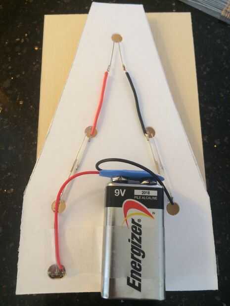El circuito debe usar unos 9 mAmps dependiendo de los LEDs, así con una de 9 voltios que tiene unos 565 mAh duración obtendrá por lo menos 2 días de luz. Había atenuado con el tiempo y todavía estaba corriendo 5 días más tarde!! Se podría cambiar a una resistencia de 47 ohm si quieres brillante, pero decidí se prefirió una vida más larga (es de 9 voltios, por un factor de 2-3, más caro que todo lo demás).