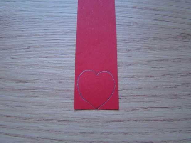 Con la tira de 2 x 10 cm, dibujar un corazón en la punta y el mango de la espada. Cortar todo bien