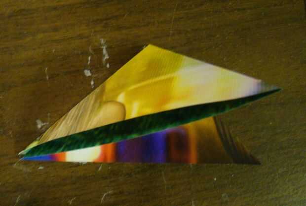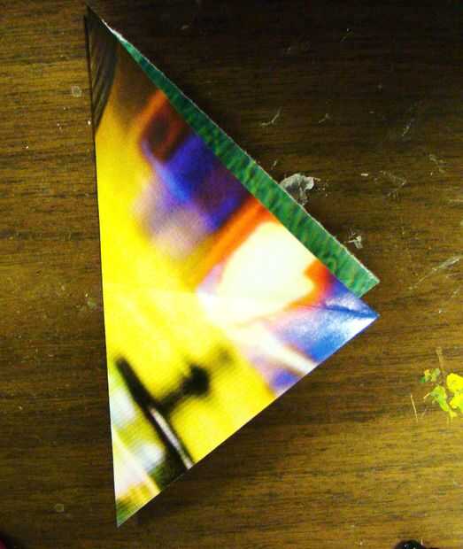 4) doblar el triángulo más grande por la mitad para hacer un triángulo más pequeño.