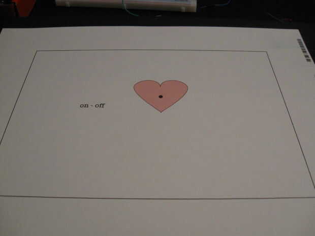 Puse a mina en Inkscape (heart.svg es mi diseño rápido). Hice mucho de improvisar y construir y deseo que asigna la ubicación de mi transistor y algunas otras cosas un poco mejor. Tenga en cuenta su interruptor de encendido y apagado este debe etiquetarse correctamente (mina no era). Diviértete aquí.