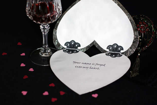 recordar el romance de la época medieval con esta sorprendente tarjeta romántica, conveniente para el día de San Valentín o cada día! Utilizando materiales comunes, parece que han forjado un corazón de metal sólido, con nombre de la persona amada en relieve audaz en la cubierta, que representa el lugar seguro que él o ella tiene en su corazón. En el interior, puede inscribir todos los sentimientos sinceros que está dispuestos a decir a su querido uno.
