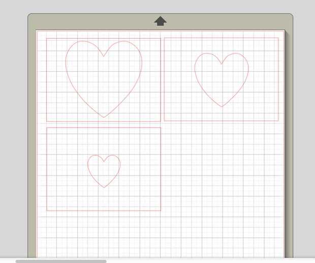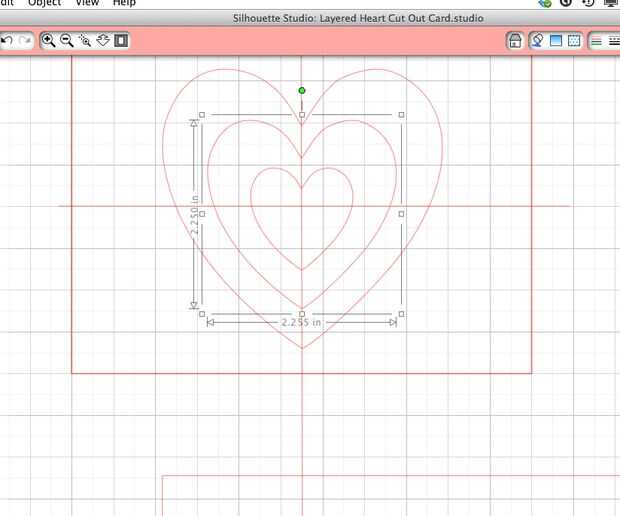 Es bastante fácil de hacer esto. Hice 3 rectángulos del tamaño de la tarjeta y los agrupamos cada uno con su propio corazón de diferentes tamaños. Ponerlos encima de la otra al momento de decidir sobre el tamaño del corazón, pero entonces movido para cortarlas por separado.