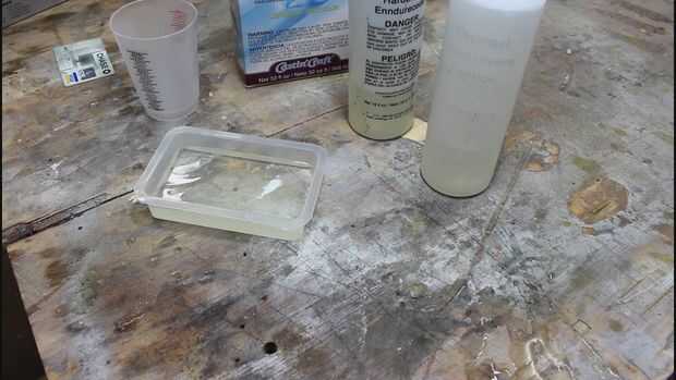 El segundo vertido es igual a la primera. 2 onzas de cada botella, resina y endurecedor. La única diferencia es agregar tu artículo.