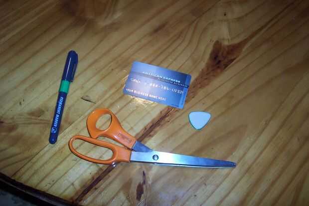 ¿Cansado de perder selecciones de la guitarra? Bueno, amigos, aquí está una manera rápida y fácil para hacer nuevas selecciones de tus viejas tarjetas de crédito. No tirar ese plástico! Cortarlas y ponerlas a usar como guitarra.Comienza con la toma d