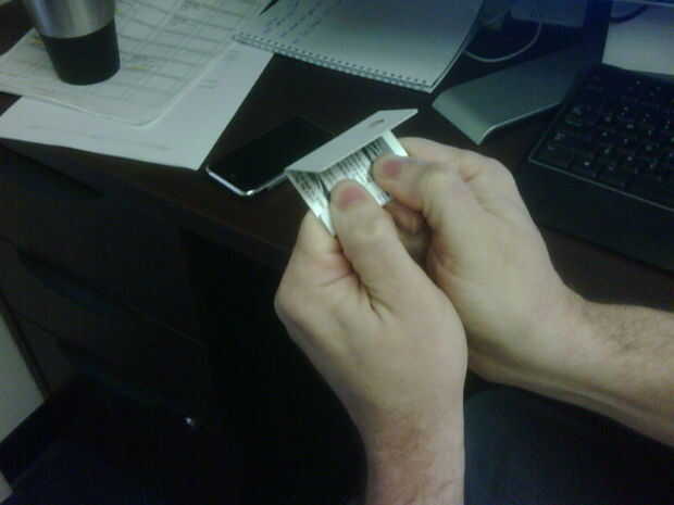 desprendible par una tarjeta de crédito a su iPhone, entre dos fichas del Scrabble y utilizar la tarjeta de crédito como un soporte de voladizo viga delgada...