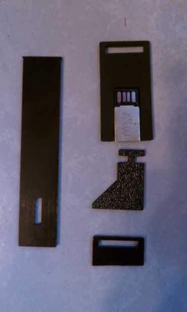 Utiliza ruedas de corte y accesorios de la fresadora para hacer piezas individuales Desmontado de los lectores de SD para determinar con la tabla tenía el circuito impreso Agujero aunque caja lado en blanco de platina de acero Enderezado resistente de la grapa y corte a 1/4" más grande que el lector es amplio, insertado a través del lector para que actúen como ejes Fresadas ranuras a cada lado del lector de tarjetas de apertura lo suficientemente grande para aceptar el eje Árboles pegados en su lugar teniendo cuidado de no tocar el lector Plástico ABS fundido en las ranuras del eje y suave arena