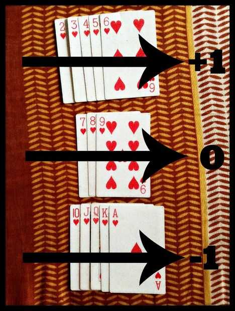 Aquí está cómo funciona. Cartas bajas, 2 a 6, son buenos cuando está quitado y se asignan el valor más 1. Cartas altas, 10s a través de ases, son malos Cuando retira y se le asigna el valor negativo de 1.