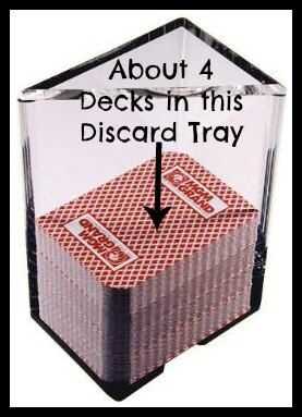 ¿Sabemos lo que es nuestra cuenta corriente pero cuántas cubiertas siguen siendo? Se puede estimar cuántos mazos quedan mirando el número de Descartes. Casinos utilizan un zapato de cubierta de 6, así que toman el número de cubiertas que ves en la bandeja de descarte y restarán 6. Es cuántas cubiertas se quedan en el zapato.
