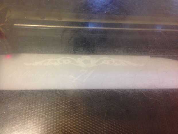 Primero nos dimos cuenta que el color de la placa de acrílico sería más adecuado para la ocasión, navegando a través de la colección de placas en el FabLab y sosteniendo un LED que brilla intensamente debajo de él. Katinka decidió que una simple blanco estaría bien; las luces iban a ser visibles, así como el texto grabado.