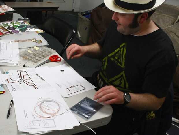 Zeve utiliza la plantilla de circuito simple para conseguir una manija en los materiales, entonces decidió hacer una puerta lógica de papel, porque Crashspace está lleno de frikis. :) Comprobar las fotos para verlo!