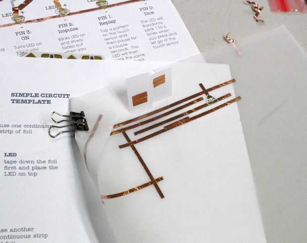 Después de esto y desde el cumpleaños de su madre iba a venir, decidió intentar su mano en una tarjeta de cumpleaños de la etiqueta engomada de circuito.