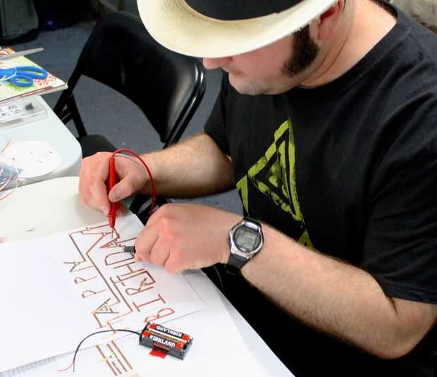 Cuando primero establecidas, la mayoría de los LEDs no enciende, probablemente debido a micro roturas en la cinta de cobre por el plegamiento. Un multímetro en modo de prueba de conductividad era esencial para encontrar tales roturas, que luego podrían fijarse por parches sobre el área afectada con cinta más conductor. Esto permite para fluir hacia arriba a través del adhesivo conductivo y sobre y alrededor del área del problema. Incluso cuando parcheado, conductividad intermitente en los rastros causó un efecto parpadeo de la LED realmente encantador y casual.