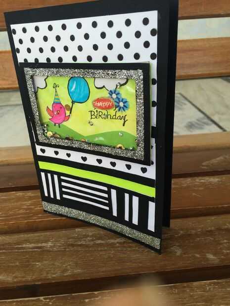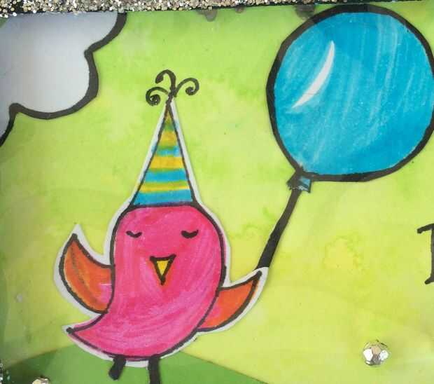 -Su tiempo hacer alarde de su imaginación. He decidido darle un pequeño toque birdy a mi tarjeta. Así usando acuarelas y rotulador hacer diseños lindos en él.