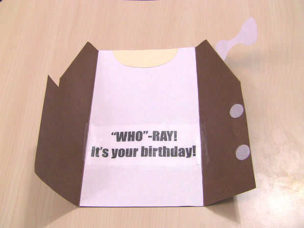 Esta extraordinaria tarjeta "Doctor Who" se asemeja al 11 º doctor (interpretado por Matt Smith). Esta tarjeta cuenta con el distintivo moño que viste generalmente y el destornillador Sonic sobresale de su bolsillo. Además, esta tarjeta utiliza velcro para cerrarlo. Cuando se abre la tarjeta, el destinatario leerá un mensaje de cumpleaños con un juego de palabras. Esta tarjeta será de interés para cualquier fan de "Doctor Who" o "whovian". Es seguro que deleitará a todo aquel que lo recibe.