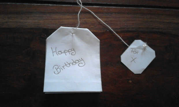 Volver a utilizar las tarjetas grandes que recibió para su B-day y la lata de té que apenas bebió mientras lee para hacer etiquetas de regalo nuevo!Paso 1: Usted necesitará (amor artesanías y reciclaje)Se necesita:tarjetas listas para ser recicladasl