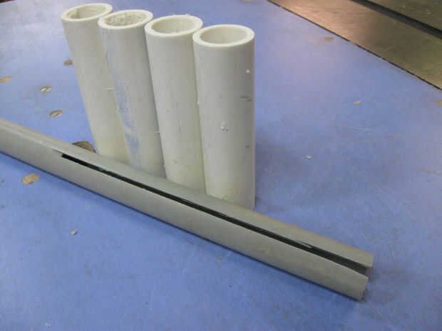 Aquí puede ver las cuatro guías y la tubería de la ranura para las canalizaciones verticales.