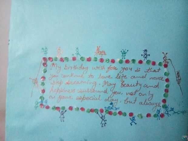 solía decorar papeles y brillo plumas adornan esta parte de la tarjeta y hojas la mayor parte del espacio en blanco, pero usted puede adornar lo más uso así algunos diseños y llene esta parte también.