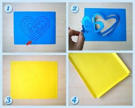 cuadrados en las esquinas de corte y plegado a lo largo de los lados de las cuatro líneas