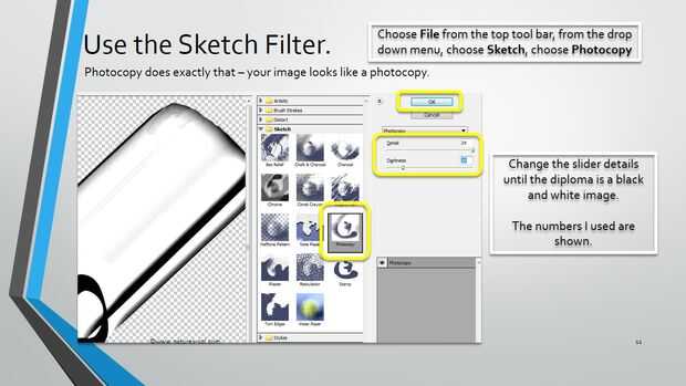 Seleccione el filtro de la barra de menú superior. En el menú desplegable, elija Sketch, entonces fotocopia.