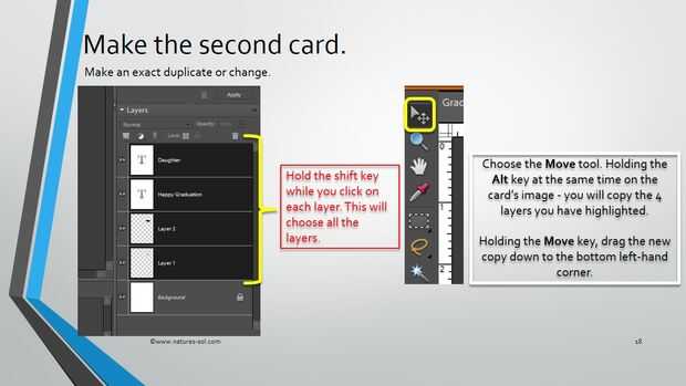 Mover la herramienta Mover sobre la imagen, pulsar la tecla Alt, seguir tirando del ratón, arrastra la segunda copia en la posición de esquina inferior. Suelte el ratón.