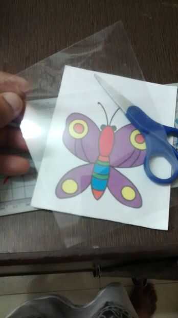 Ahora pegue la diapositiva ohp a la parte superior. Sólo una pequeña línea de cola. También se debe la diapositiva con la imagen de la grapa.