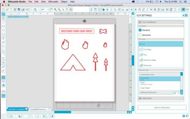 Abra el software estudio de silueta y diseño de los diferentes elementos que desee en su tarjeta.