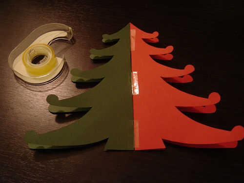 Conecte los papeles del árbol con cinta. Así que, cuando termine y esté listo para conectar, será realmente independiente.
