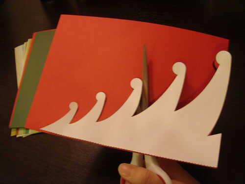 Doble un pedazo de papel por la mitad y coloque las plantillas. Corte fuera con unas tijeras y corte interior usando una cuchilla.