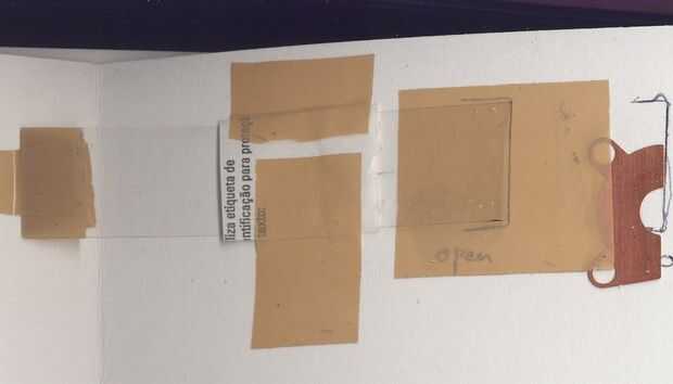 Aquí he pegado una plancha de cobre de un viejo condensador variable que una placa del interruptor. La pieza de plástico transparente que opera el interruptor se ha guiado a través de una funda de papel para que confiablemente cortará la música de cada tiempo.