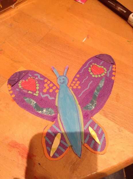Sobre papel de boceto elección tú mariposa contorno y cortar. Luego tomar otro papel y hacer diseños en su mariposa. También puede agregar bling un poco. (Esto es donde usted utilizar su imaginación)