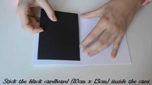 Paso 12: Pegar la cartulina negra dentro de la tarjeta.